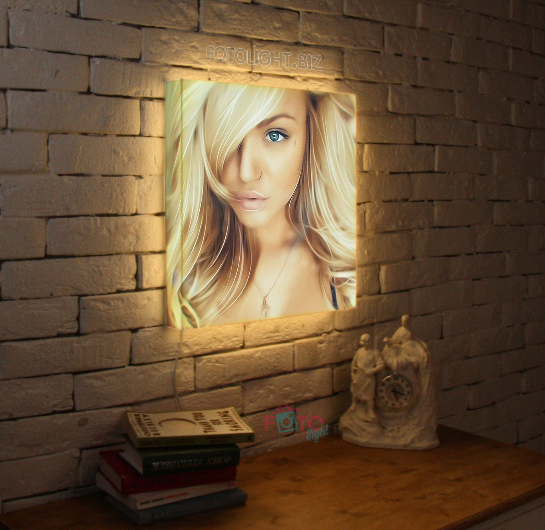 FotoLight - представляет собой легкий светодиодный короб, поверх которого крепится постер с различными изображениями.