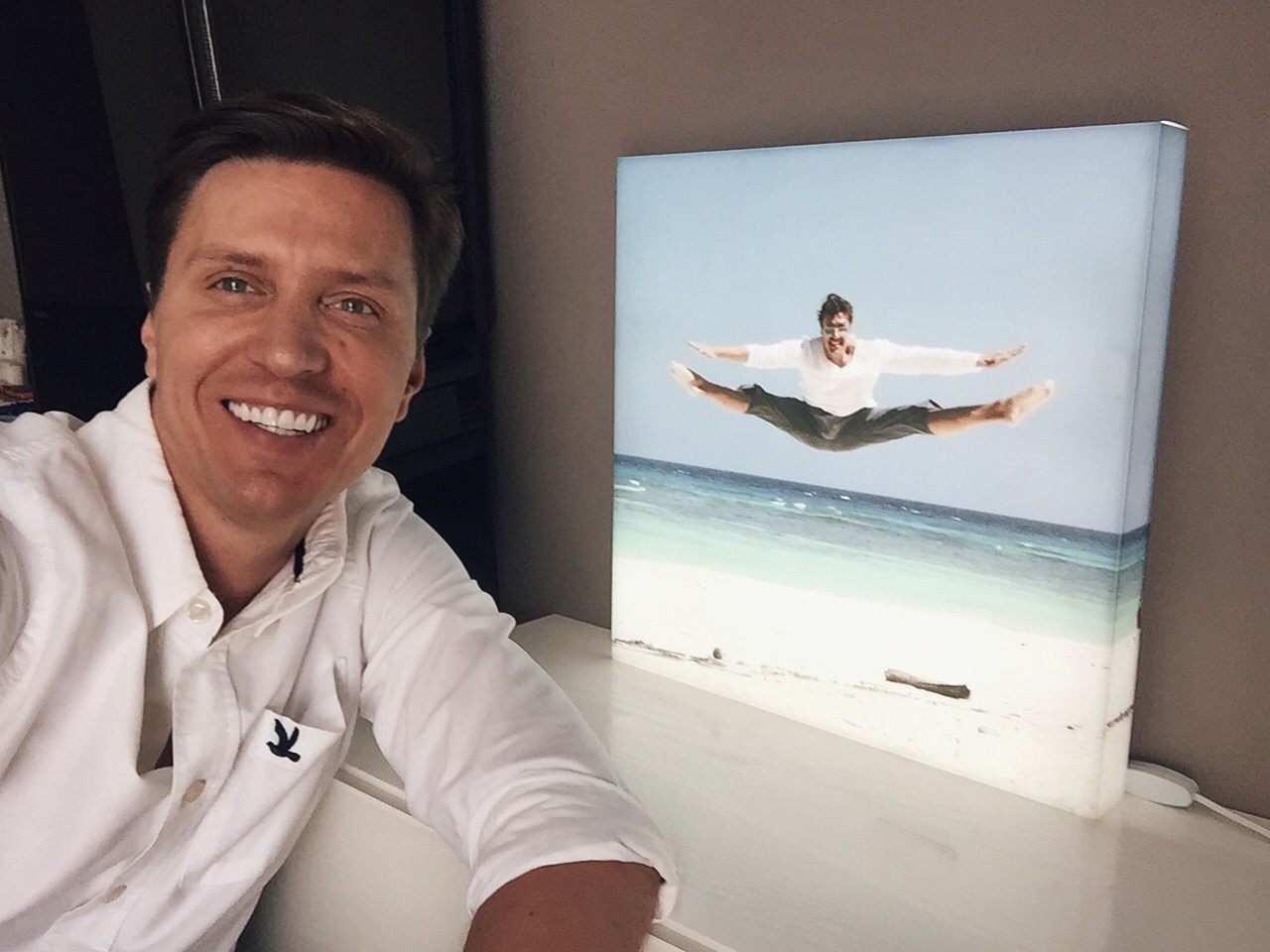 "Каждый из нас сталкивался с вопросом: что подарить человеку, у которого все есть? Вот тут-то на помощь и приходит ФОТОЛАЙТ. Не счесть, со стен скольких домов и офисов наших друзей светится энергия их юбилеев и свадеб! Это мы с моей женой Полиной таким образом передали им свою любовь. Передали с помощью сверхтворческого коллектива ФОТОЛАЙТ. В самом деле, любое зрелище, - даже любимая телепередача! - может надоесть, не мне ли знать это. Не надоест только созерцание собственного лица в самом выгодном свете. Именно в свете, на это и расчет ФОТОЛАЙТ. Удивительно, как преображается любое фото, если его умело подсветить изнутри. Тут открывается тайник души, и дарящему остается только сказать: “Светлый ты человек!” Причем подарок от ФОТОЛАЙТ - это вовсе не дорого, дорог свет воспоминаний. За что и спасибо!"